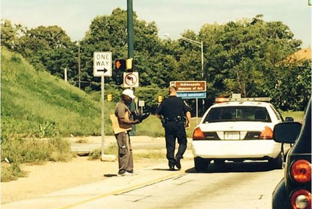 “Just seen an Indy police officer pull over. Go into his trunk n give a homeless guy a pair of shiny boots. #COPS,” Hibbert tweeted on Monday.