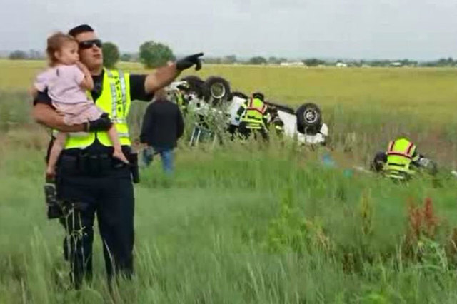 When a paramedic handed police officer Nick Struck a weeping toddler soaked in gasoline at the scene of a deadly car crash in Brighton, Colorado, his fatherly instincts kicked in.