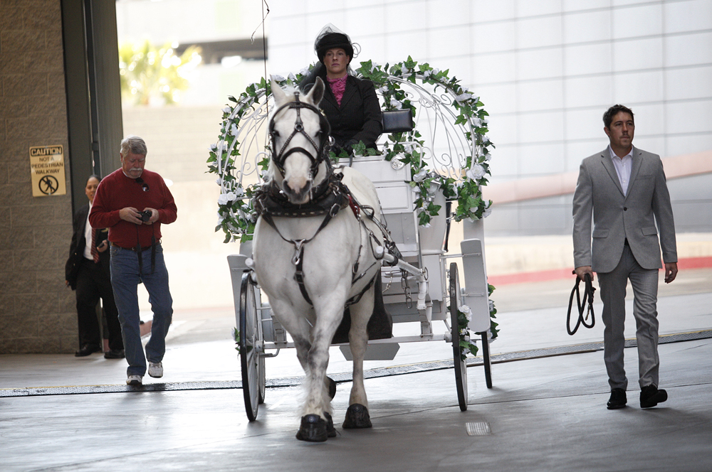Dressed as Prince Charming, Richard Kronen proposed to his girlfriend, Janny Kinnas, with a horse and carriage and glass slipper outside World Market Center during the Las Vegas Winter Market on Feb. 1, 2012. The elaborate proposal was months in the making.