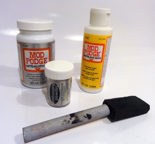 Step 2: Once that has dried a bit, add a layer of Mod Podge Matte. While the Modge Podge Matte is still wet, sprinkle a layer of the sparkles onto the area.