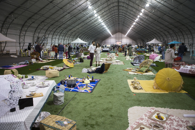 Forty diverse picnic baskets dotted a plot of turf Saturday evening inside Pavilion 2 at the World Market Center.