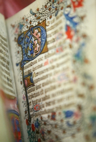 Another volume in the exhibit is a Rheims New Testament, the first Roman Catholic translation of the New Testament into English, which was printed in 1582 and is valued at about $24,000. Olsson says the Rheims represented a sort of countermove to Protestant translations in the vernacular that were in use at the time.