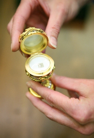 By the way: How might one store a fragment of a microform Bible that went to the moon? In a modern-day Faberge egg, of course, complete with jeweled embellishments.