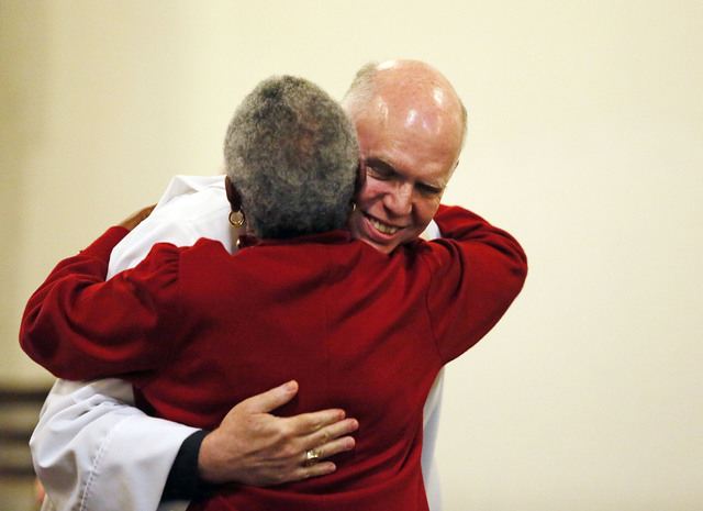 About 45 people attended the Thursday evening service to celebrate marriage equality in Nevada at Christ Church Episcopal, 2000 S. Maryland Parkway, and while acknowledging that some Christian churches are more welcoming to gay and lesbian couples than others, the service also acknowledged that the Christian community still has a long way to go.