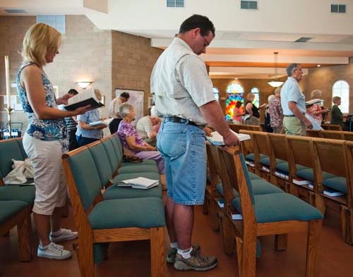 With heads bowed, eyes closed and hands clasped, Clark County commissioners pray before every meeting.