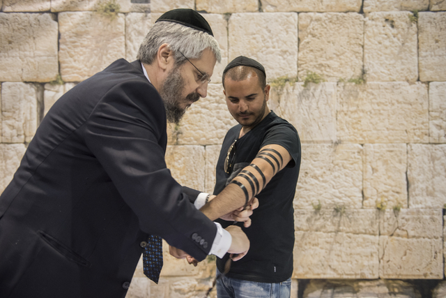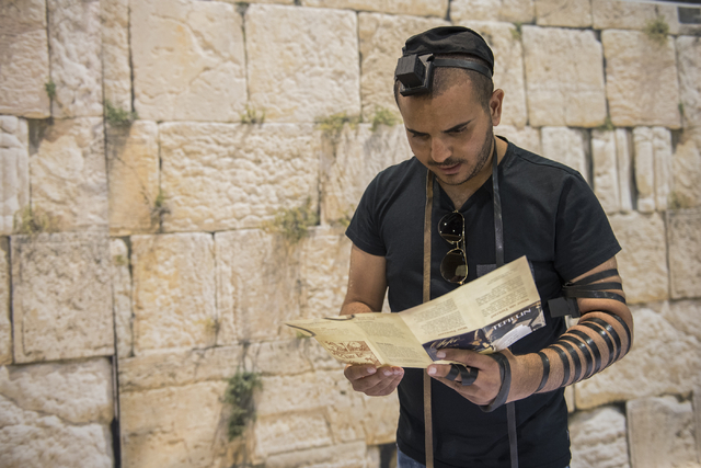 Rabbi Shea Harlig of Chabad of Southern Nevada said praying with tefillin is a common practice among visitors to the real Western Wall.