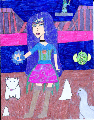 Her secret identity: Adamaria, a famous fashion designer in New York City, lives in a mansion on a hill near the city. Accompanied by her assistant butler, Derek, a handsome, mid-age fellow, helps her with her training and follows her everywhere she goes as her bodyguard. Not only is he her assistant, but also is great friends with her. When it comes to action while she works at her studio, her butler covers for her and stays behind as she sneaks behind her bookcase where there is a hidden changing room and a slide to get where all the commotion is about. While on her way, a special button is on her boots and they become ice skates as she skies her way down to the city, creating an ice slide from her hands.