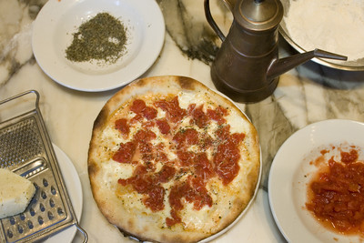 Which brings us to another of Arena's favorite subjects: dispelling pizza myths. Those New York pizzas were baked on stone, which, he said, is more important than the source of heat, because it sears the crust and pulls moisture out of it (although coal-fired ovens are known for making crisper pizzas that are more charred).