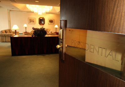 Sinatra didn't like the decor during his first stay, so he had it remodeled before his second. The door boasts a commemorative plaque. Management usually holds it for high rollers.