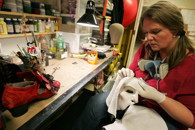 Born and raised in Germany, Quiroga did an internship at the Frankfurt Opera House, where she honed her sewing abilities on the most ornate costumes. At "Phantom," she's responsible for the gluing and other activities that require training she has never had. But Quiroga doesn't let that stand in her way.
