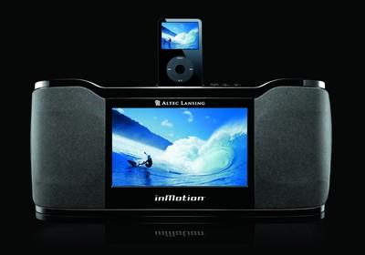 The player works with all iPod models and other portable media players, too. It features 3-inch full-range speakers, a built-in side-firing subwoofer and an SFX stereo field expander that, the manufacturer says, "widens the audio soundstage, giving you a genuine movie theater experience."