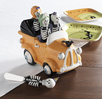 Just use this set of four Skeleton Spreaders to transfer your butter, margarine, marmalade, cream cheese or peanut butter to the carbohydrate of your choice. When they're not in use, the spreaders rest comfortably in an incongruously stylish ceramic convertible.