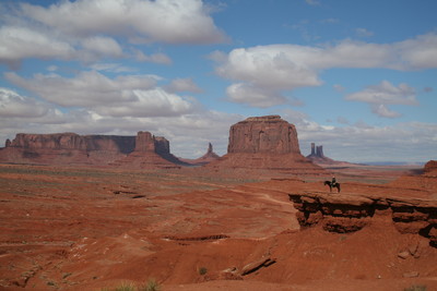 After the Great Depression struck, there was a sharp decline in tourism and Navajo families suffered deeply. In 1938, when the Gouldings heard a motion picture company was looking for a location to shoot a Western movie, they set out to Hollywood. Thanks to their persistence and a choice sample of photographs, many by famed photographer Joseph Muench, film director John Ford arrived in the valley to shoot the first of nine Westerns that would forever link his legend to Monument Valley's. Locals were hired as movie extras and laborers, which brought help to the struggling families during those rough financial times.