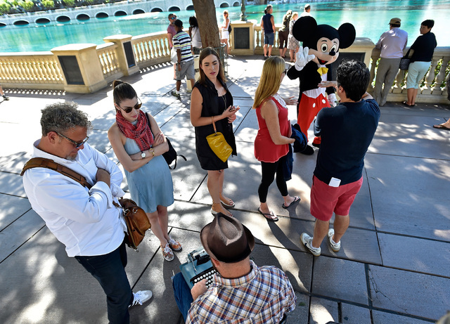Knode, 35, is a Seattle poet who has been taking a sort of busman’s holiday in Las Vegas during the past week, exploring the city and writing made-to-order poems for passers-by seeking a bit of poetic wisdom, perhaps, and a unique souvenir of their trips to Las Vegas, for sure.