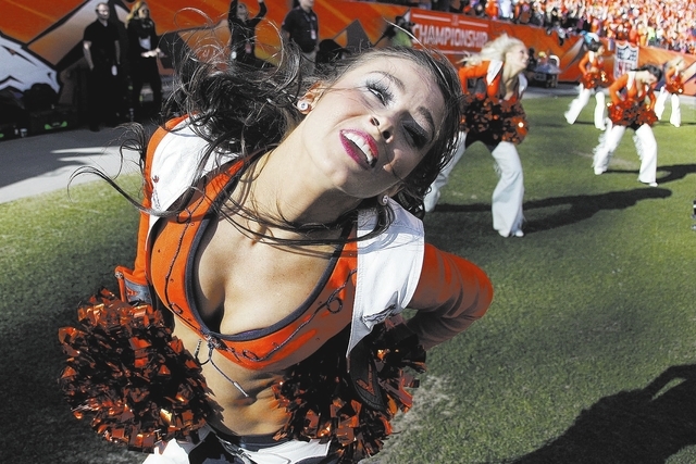 First shot by the sideline camera guys (and you know they’re guys) of a smiling cheerleader who feels compelled to blow a kiss to the camera and make all of the single guys watching alone at home feel so very, very lonely.