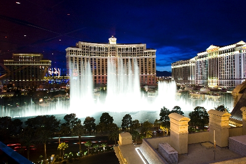 3. The Eiffel Tower at Paris Las Vegas, 3655 Las Vegas Blvd. South, offers an ideal view of the Fountains of Bellagio. From either the restaurant or the observation deck, you have a perfect view of Bellagio’s lake, and you don’t have to peer over the tops of people’s heads to see the fountain show. You may have to jostle for position on the observation deck, which is surrounded by wire mesh to prevent falls. That makes getting a good photo tricky. Still, the deck is 460 feet above street level, and if you wait around long enough, you’ll get a good look. Admission to the observation deck, which opens daily at 9:30 a.m., is $10 during the day and $15 after 7:30 p.m. There are some two-for-one coupons out there, usually in visitors’ guides. If you prefer the view from a table in the Eiffel Tower restaurant, you’ll pay a bit more. Besides the fountains, you can see the mountains to the west during the daytime.