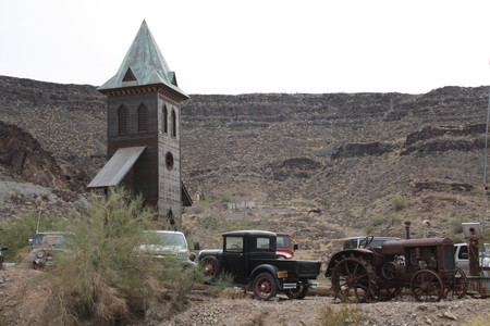 We had all worked up an appetite, but when I told the girls we were heading about five miles up a rough gravel road to an old mining camp to eat, they rolled their eyes. Off we went, far off the beaten path into the Buckskin Mountains just east of town. The Nellie E. Saloon took its name from the old mining claim where it is built and is also known as the Desert Bar. By either name, I had been told, it was not to be missed.