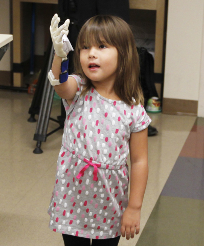 “I love it,” the 4-year-old said shyly when asked about her new hand.