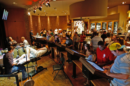 "All the artists are booked for a while," receptionist Jenny Magerko tells him. "We can get you seated in about four hours."