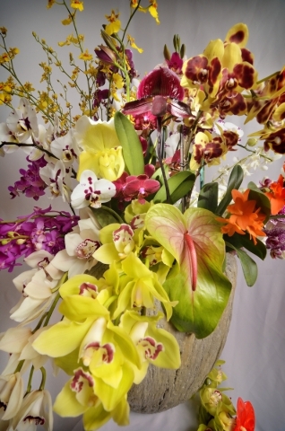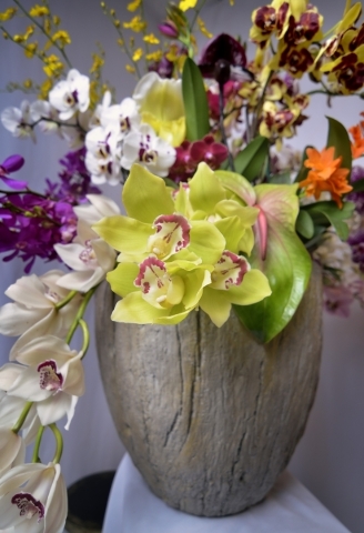 For approximately $5,000, Pellew can whip up an arrangement using hydrangea as a base, with 25 to 30 stems of rare orchids, 50 French tulips, and 30 to 40 peonies, set in a Baccarat crystal vase.