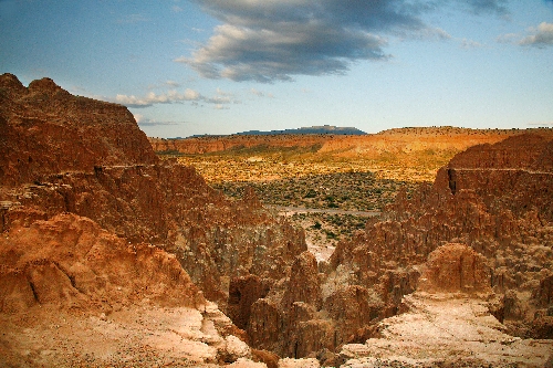 The next town south of Panaca, Caliente, was a product of the industrial age, built in 1905 to serve a railroad that also gave birth to Las Vegas the same year. The most impressive building in town is the former rail depot, a Mission Revival structure built in 1923. Nowadays, it serves as the Caliente city hall. Conversion from steam to diesel-electric ended the need for most railroad jobs in Caliente, and the opening of Nevada Route 318, a faster north-south route than U.S. 93, diverted the hurry-up through traffic from which Caliente motels and restaurants had prospered. But the section of U.S. 93 so bypassed -- 148 miles from Crystal Springs to Ely -- was also the most beautiful and is now recognized as the Great Basin Scenic Byway. One May morning, I saw five golden eagles while driving its lower 67 miles. Enough travelers take the scenic route to keep several Caliente motels open.