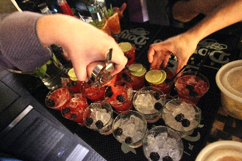 So, as the guests munched miniburgers, onion tarts and tuna tartare rolls, Suciu gave a thorough lesson on how tequila is made, graded and consumed. He showed them how to muddle fruit and mix two drinks.