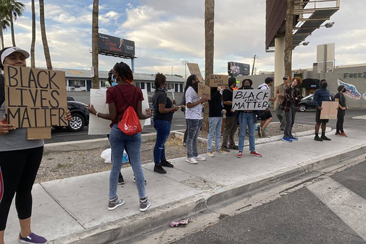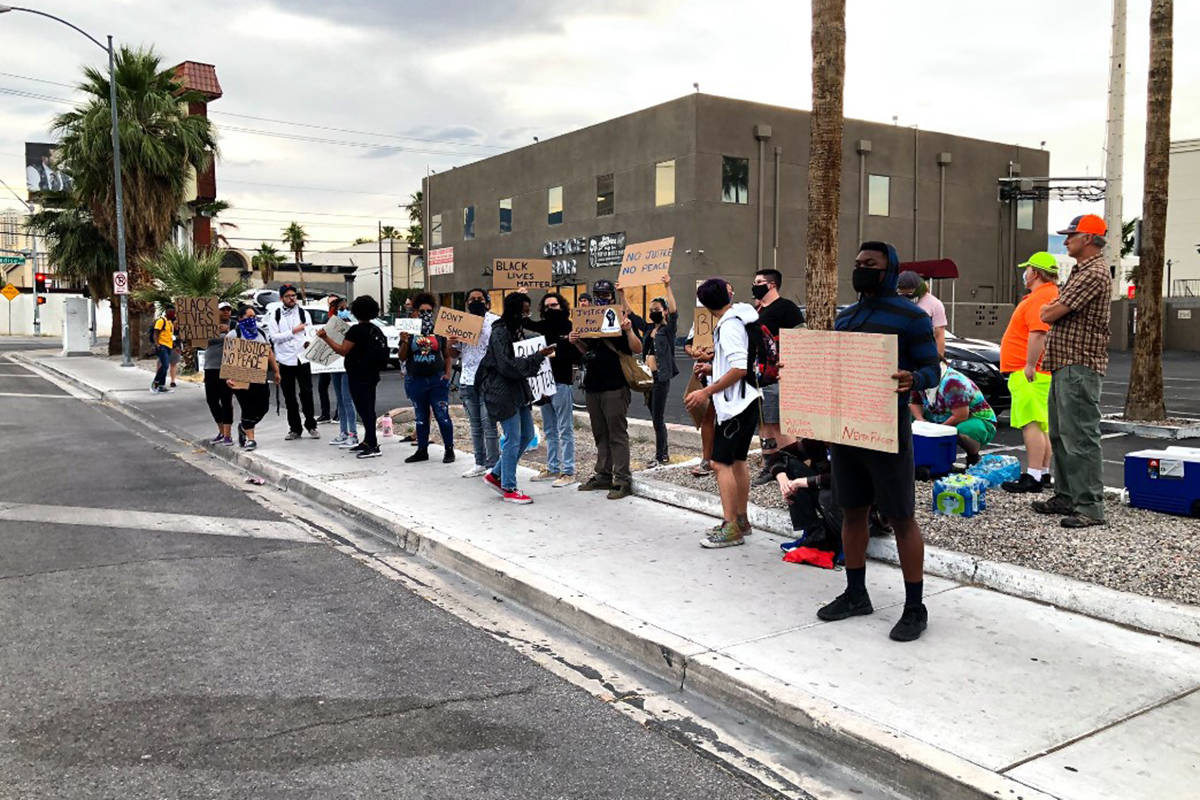 Christopher Reardanz, 34, held a sign with a group of about 30 others near Paradise Road and Naples Drive by UNLV, protesting systemic racism and the killing of George Floyd by police in Minneapolis.