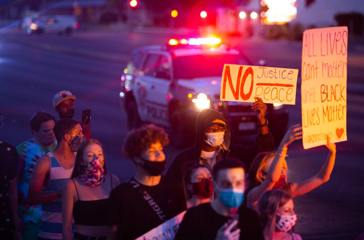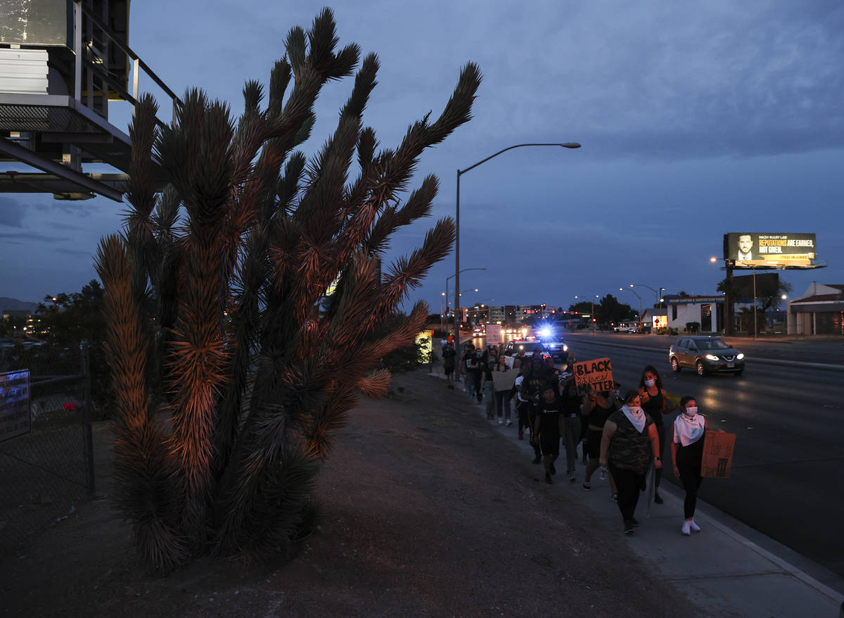 A Black Lives Matter protest that began near UNLV on Tuesday night and lasted nearly five hours ended peacefully for the first time in five straight days of demonstrations in Las Vegas.