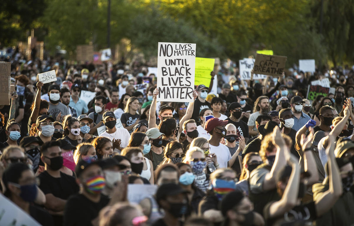 Thousands of demonstrators protested peacefully in the Historic Westside neighborhood of Las Vegas on Friday night during a Black Lives Matter rally and candlelight vigil for George Floyd and other black Americans who have died in confrontations with police.