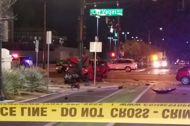 A crash in downtown Las Vegas sent one person to the hospital with critical injuries late Monday night.