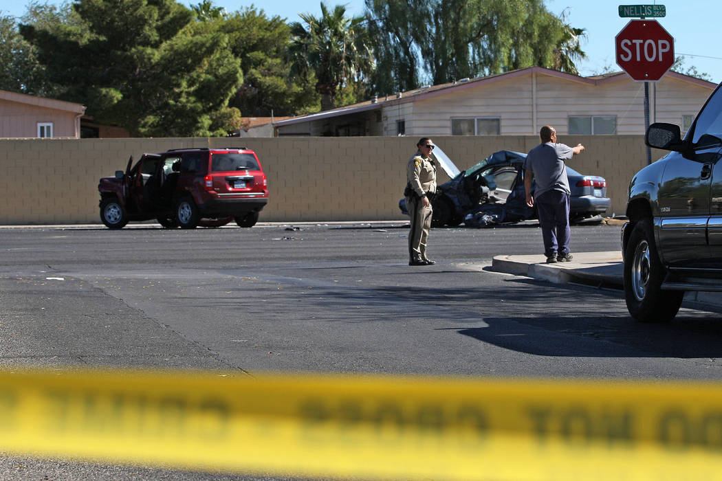 Metropolitan Police Department patrol officers responded about 10:55 a.m. to the intersection of Vista Flora Way and South Nellis Boulevard, near East Desert Inn Road, for reports of a crash involving two vehicles.