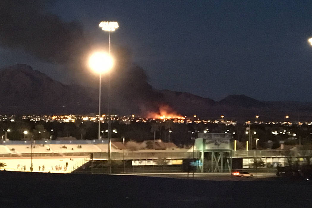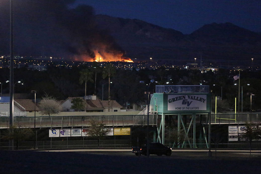 A fire as seen from Green Valley High School in Henderson engulfs a section of Clark County Wetlands Park on Tuesday, February 20, 2018. Michael Quine/Las Vegas Review-Journal @Vegas88s
