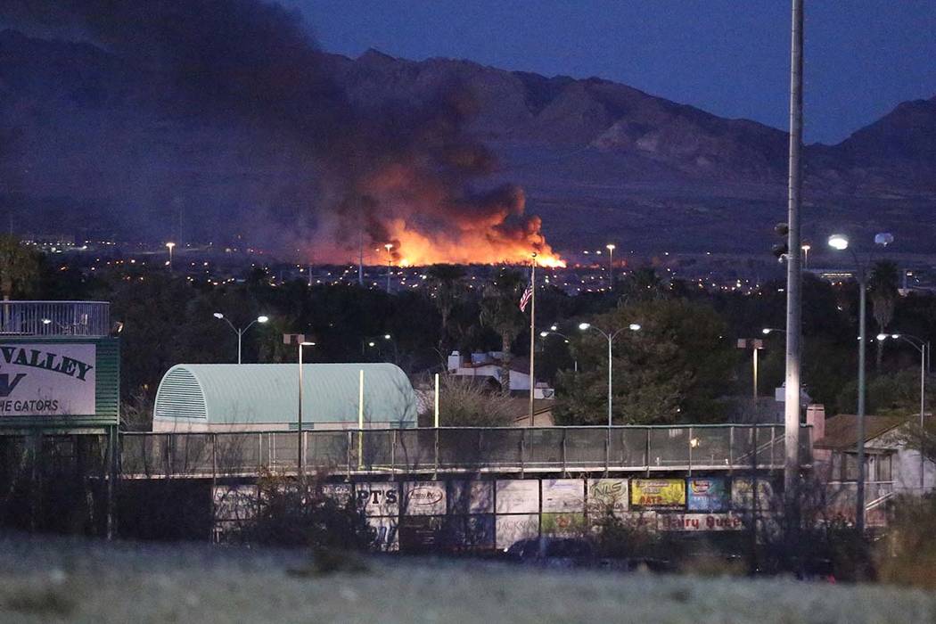 A fire engulfs wetlands park near Sam Boyd Stadium on Tuesday, February 20, 2018. Michael Quine/Las Vegas Review-Journal @Vegas88s