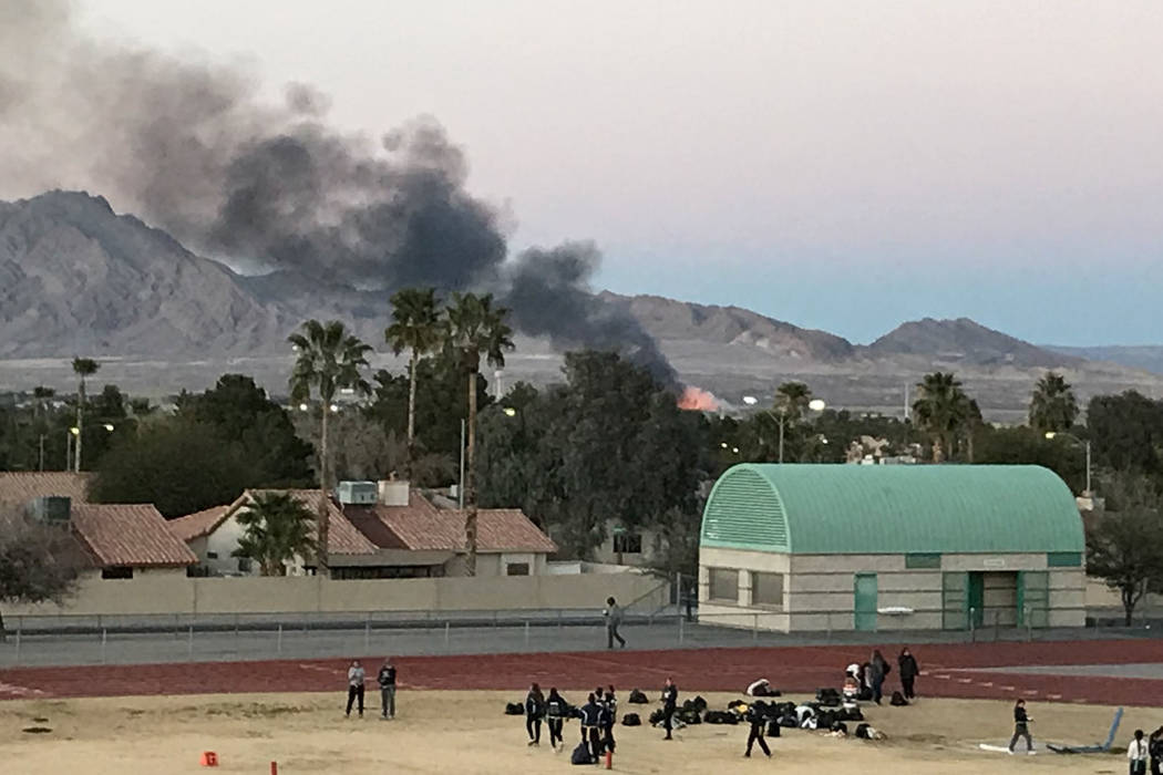 Smoke from a fire at Wetlands Park is seen from Green Valley High School on Tuesday, Feb. 20, 2018. Sam Gordon Las Vegas Review-Journal