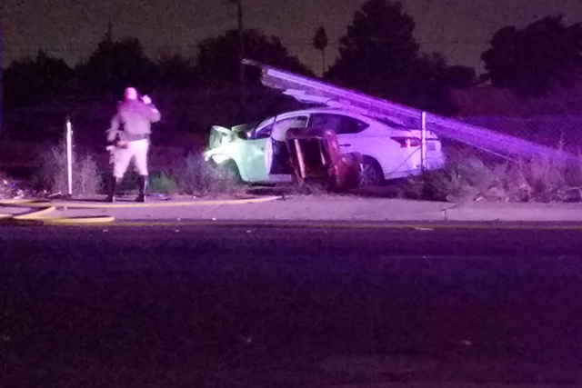 NV Energy crews are working to restore power to a neighborhood after a single-vehicle crash on East Owens Avenue near Marion Drive early Thursday morning.