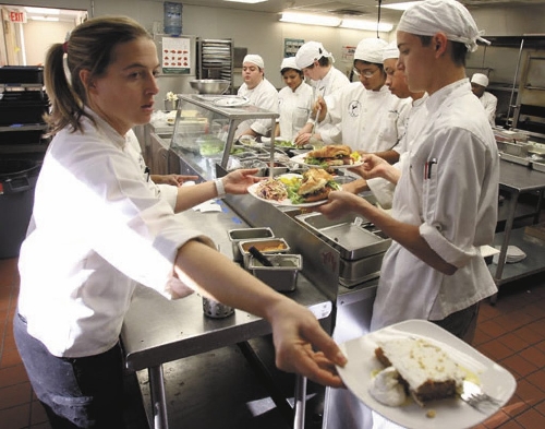 At the dilapidated Southeast Career Technical Academy, the student chefs work so far in the back they're in a separate building. Prepared food must be transported a short distance outside and then carted up a service ramp to the Adler Dining Hall, the school restaurant.