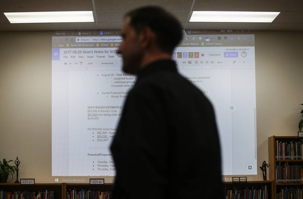 The school will have to pay for several years of raises for its administrators as the Clark County School District grapples with a budget shortfall. The projected impact to Saville, just from its administrative raises: $53,000.
