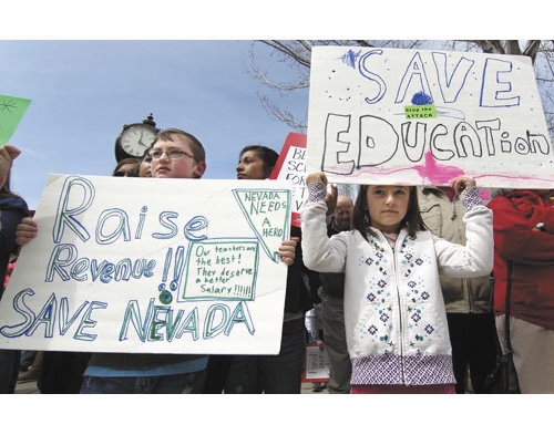 The protest, organized with the support of the Nevada State Education Association, focused on convincing Sandoval and the Republican voting bloc to reconsider their opposition to increasing taxes.
