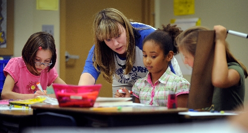 Friday morning’s topic was rounding numbers. All fourth-grade teachers are tackling the same hard-to-grasp topic. Teachers meet every week to coordinate curriculum, considering not only their grade but all grades, kindergarten through fifth, the principal said.