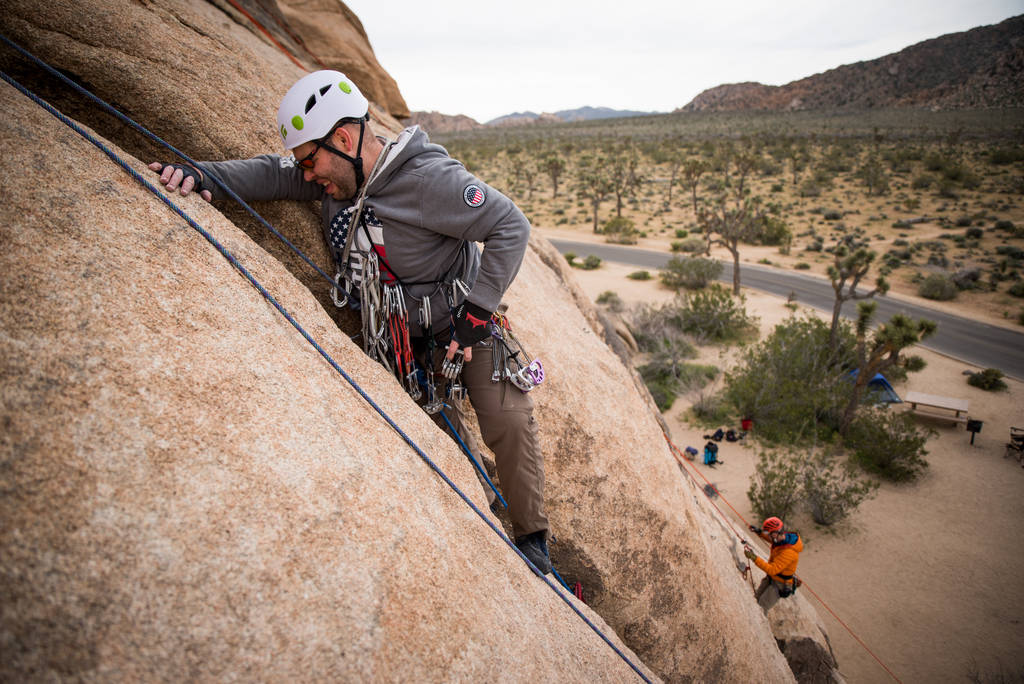 About three years ago, he met a visually impaired rock climber. “She got me into adaptive climbing. I fell in love with it,” Sturges says.