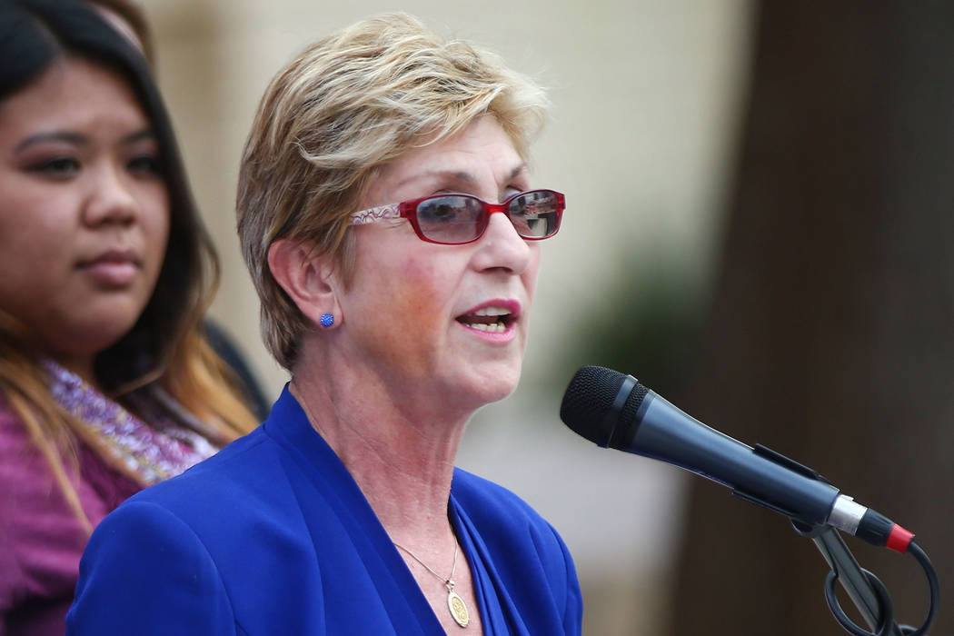 Nevada’s former first lady Sandy Miller took to the microphone with a message to the crowd: Change the makeup of the Legislature in 2018 and give seats to those who care about education.
