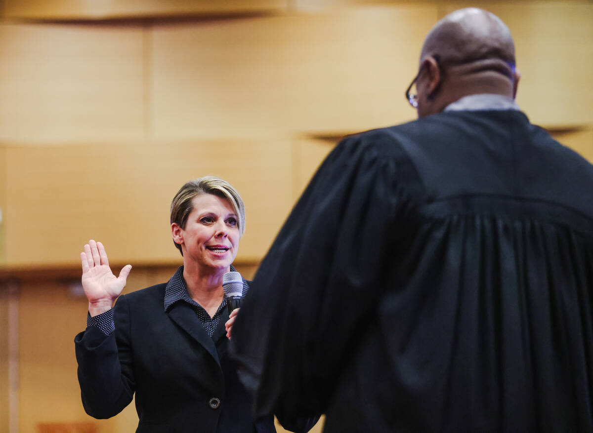 Each of the new trustees came up to a podium where public comments are typically heard to take the oath of office. They each raised their right hand while taking the oath.