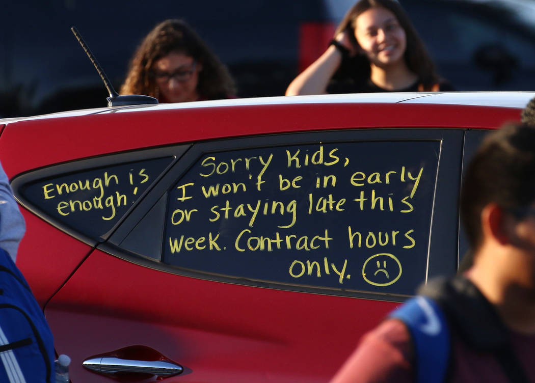 A few hundred people turned out for a protest Monday morning in support of the teacher’s union, which is threatening to strike against the Clark County School District.