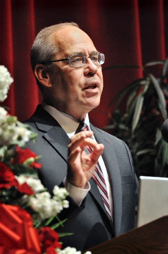 In response to questions from the audience, he said he did not think a pending rewrite of the formula used to allocate funds to the state's colleges and universities pitted the northern schools against the southern schools, although that perception exists in the public.