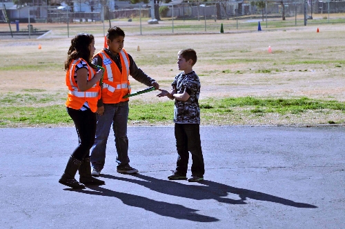 Students appointed as safety officers patrol the playground at the school at 2001 S. Winterwood Blvd. and resolve problems among their peers.