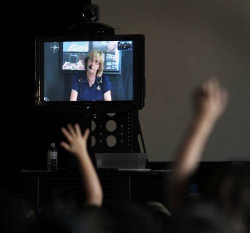 Miller Elementary School's 600 students, sitting on their cafeteria floor in North Las Vegas with eyes fixed on the TV screen, simultaneously yell, "Yes." A few seconds later, they also laugh in unison after hearing their reply reach Pearson on a dock in Israel.