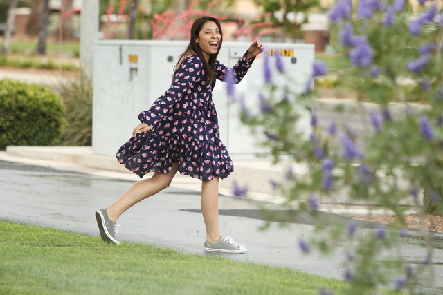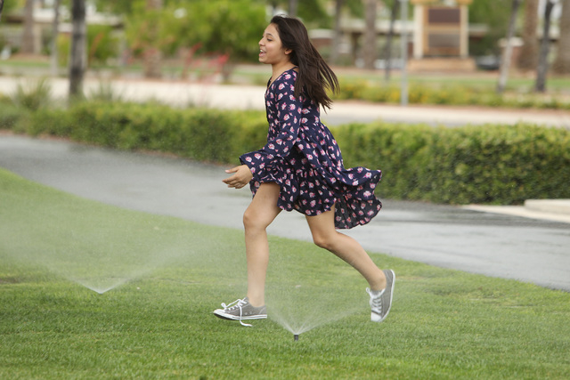 At a park in Henderson, Kristina slipped away from her mother to run through some sprinklers.