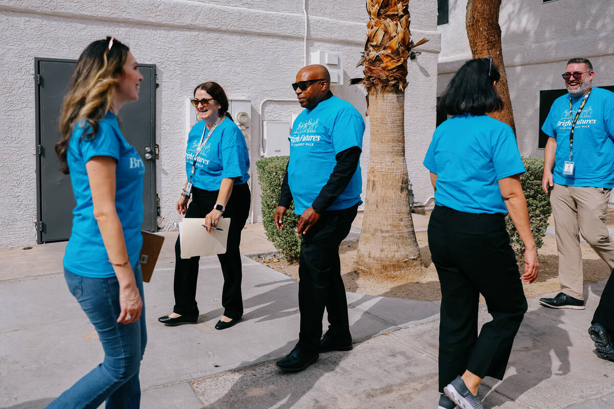 Volunteers and school district employees gathered at Mack Middle School in east Las Vegas to join a door knocking campaign to get students who were previously enrolled in the school district back into the classroom. Titled the Bright Futures Walk, participants drove to houses and apartments near the middle school to persuade parents to re-enroll their children.