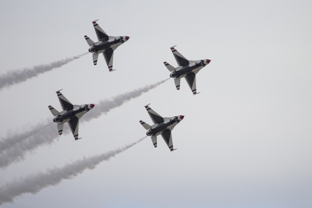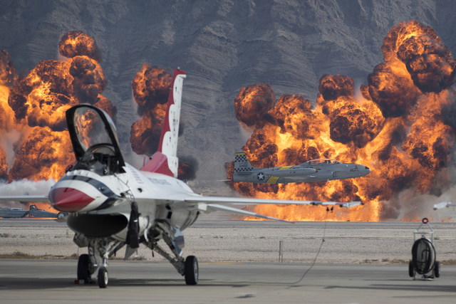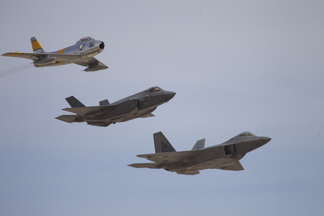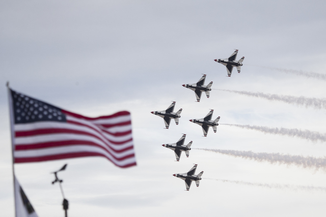 Warbirds and the Thunderbirds’ red-white-and-blue jets demonstrated the nation’s air power Saturday for 135,000 spectators who flocked to Nellis Air Force Base for the first Aviation Nation public open house in two years.
