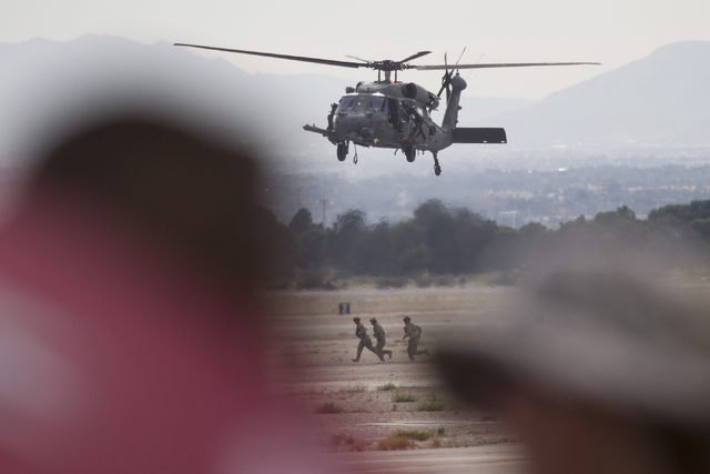 Andrea Holloway, 21, a citizen-soldier with the Nevada Army National Guard’s 240th Engineers, said coming to the air show “is a lot of fun just to get away from responsibilities to enjoy your family for a little bit and experience what we have and experience something different.”